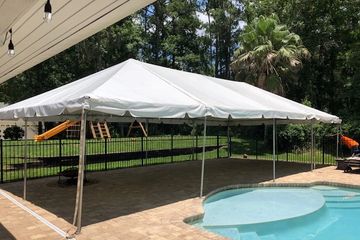 We offer frame tents, pole tents, canopy's, tables, chairs, grills, heaters, table covers, dance floors, bars, coolers, pedestal fans.